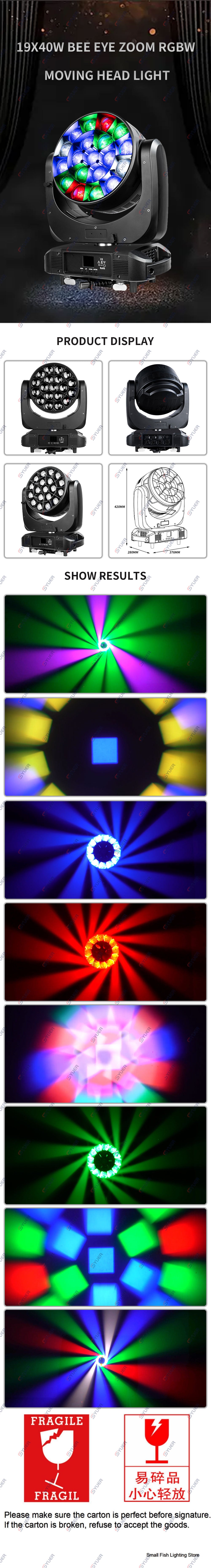 YUER™️ 19X40W Bee Eye Zoom RGBW Moving Head Light DMX512 21/23/35/78/92/97/99CH Beam Pattern Effect DJ Disco Stage Wedding Party Bar