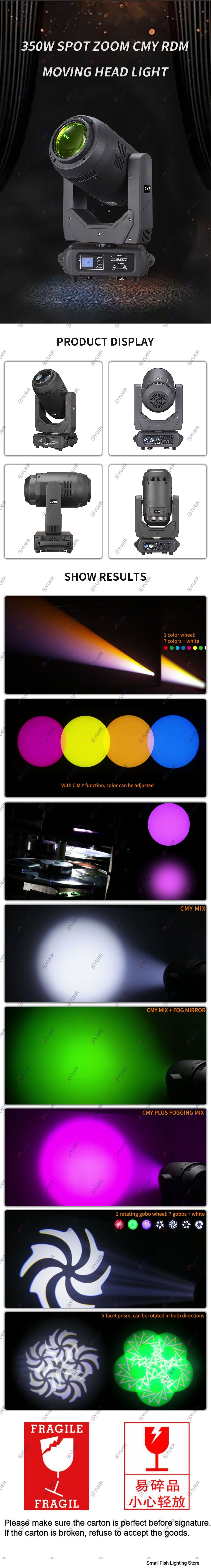 YUER™️ 350W Spot Zoom Moving Head Light CMY RDM DMX512 20CH Atomization Strobe Effect Stage Light DJ Disco Wedding Music Party Bar Club