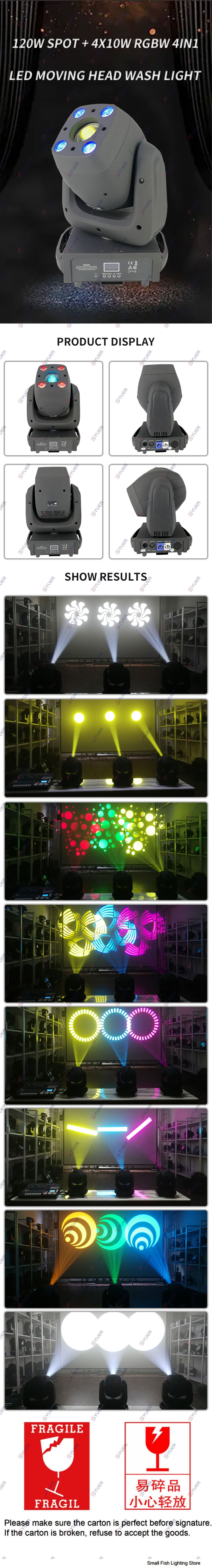 YUER™️ Moving Head LED Spot Wash Stage Light 120W Spot And 4X10W RGBW 4IN1 LED Moving Head Wash Light DMX Lighting Console Dj Lights