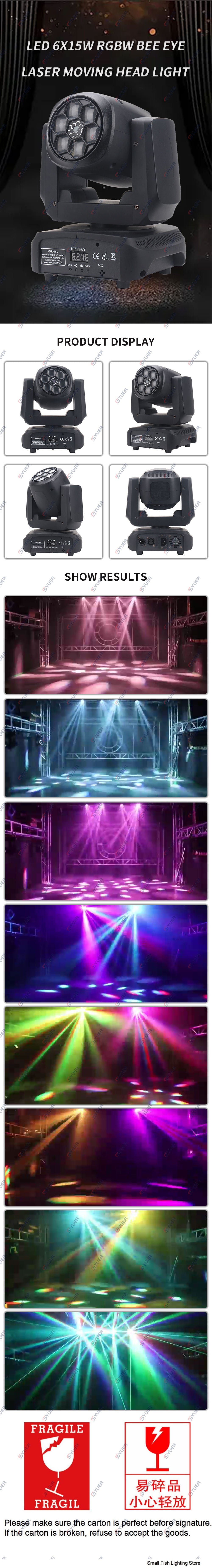 YUER™️ NEW LED 6X15W RGBW Bee Eye Laser Moving Head Light DMX512 10/15CH Strobe Dyeing Effect Lighting DJ Disco Stage Party Wedding Bar