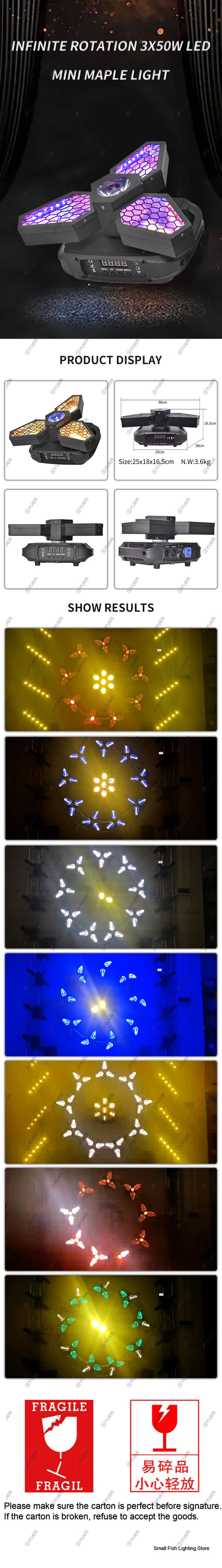 YUER™️ New Mold Mini Infinite Rotation 3x50W LED Retro Flash Light DMX512 DJ Party flashing lights dance club Disco Stage Effect Light