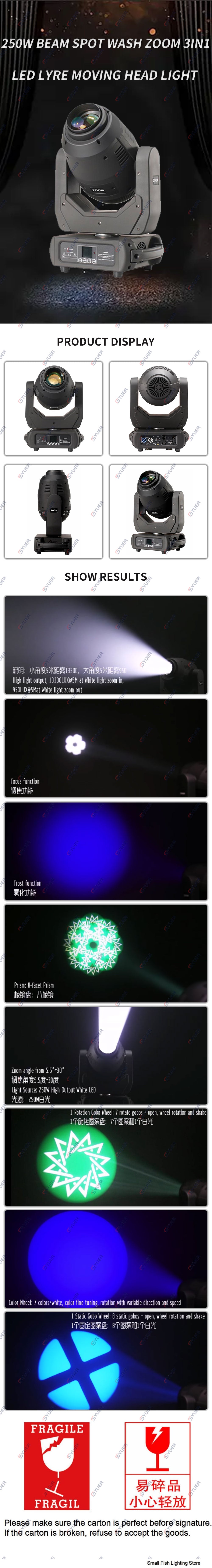 YUER™️ 250W LED Lyre Moving Head Light Beam Spot Wash Zoom 3IN1 Wedding Effect Dj Light DMX Party Light LED Moving Head Beam Lights