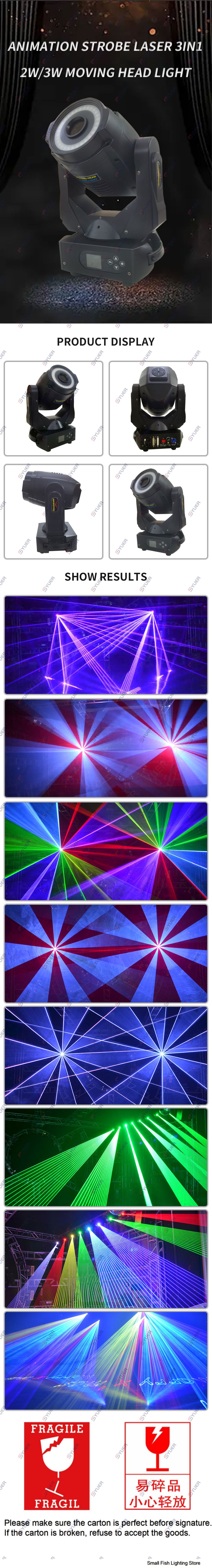 YUER™️ 2W 3W Professional DJ Disco Lights Animation Strobe Laser 3in1 Moving Head Light DMX Nightclub Party Show Stage Lighting DMX512