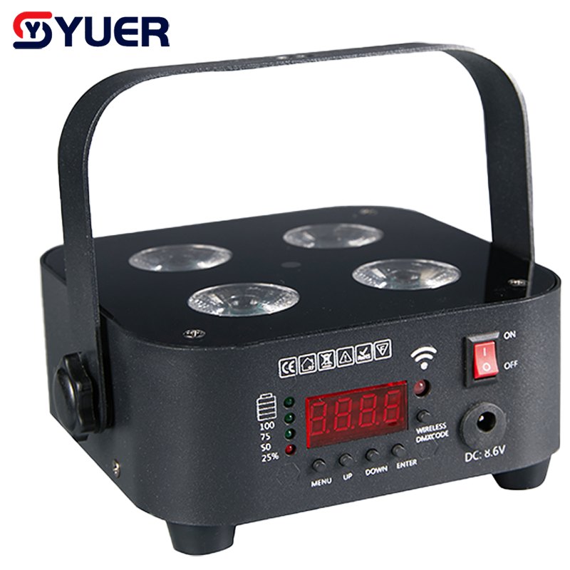 YUER™️ Battery LED Par Light 4X15W RGBWA UV 6IN1 DMX512 Control DJ Party Disco Wedding KTV Battery Stage Light