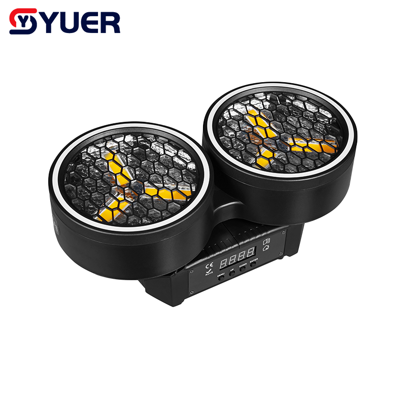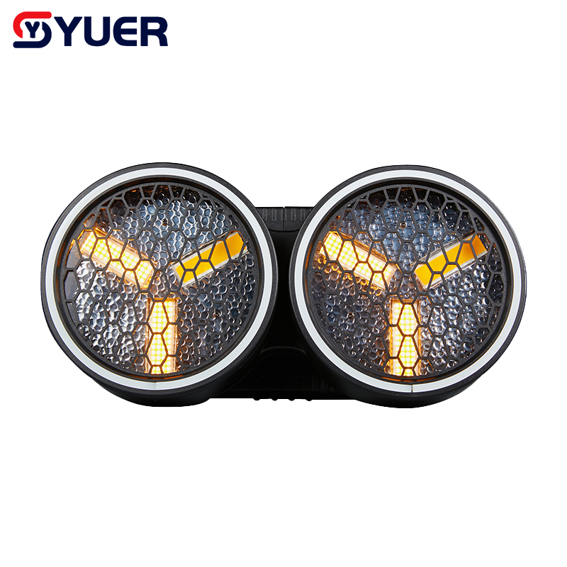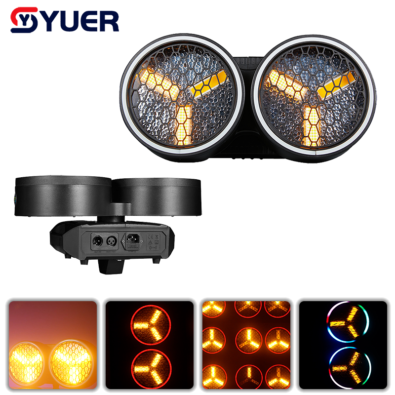 YUER™️LED 6x20W Gold + 102X0.2W RGB 2 Eyes Moving Head Effect Light With Ring Infinite Rotation DMX512 For DJ Disco Stage Wedding Party