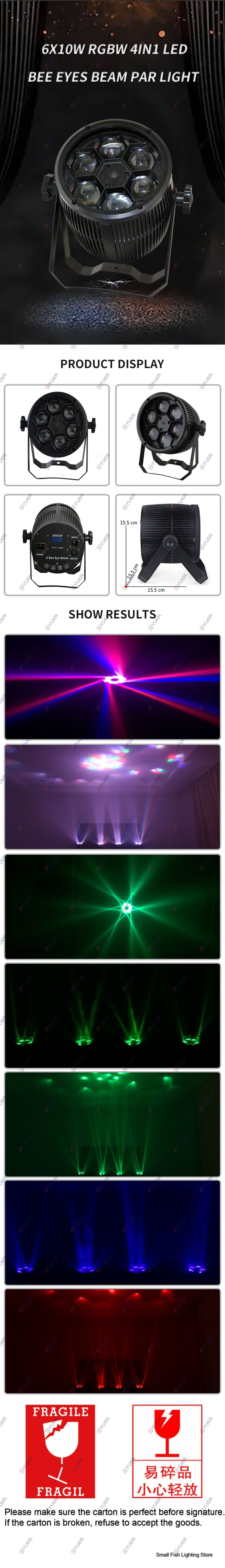 YUER™️ 6X10W RGBW 4IN1 LED Bee Eyes Beam Par Light For Stage Dj Disco Party Club Bar Laser Effect Lighting