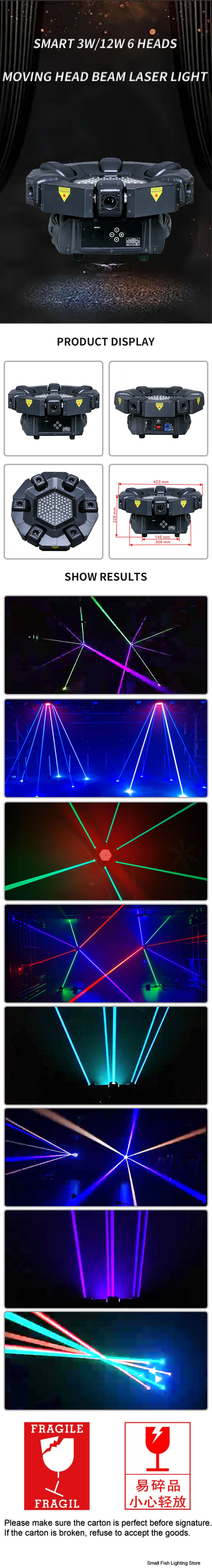 YUER™️ New Mold Smart 6 Heads Moving Head Beam Laser Light RGB Floral Color Laser Light Projector Unlimited Rotating Disco Laser Light