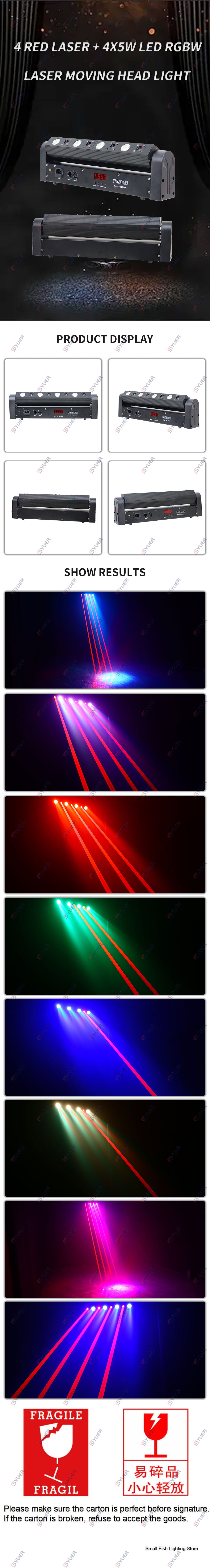 YUER™️ 4 Red Laser + 4x5w LED RGBW Beam Laser Scanner Moving Head Stage Light For Party Christmas Disco DJ Indoor Night Club