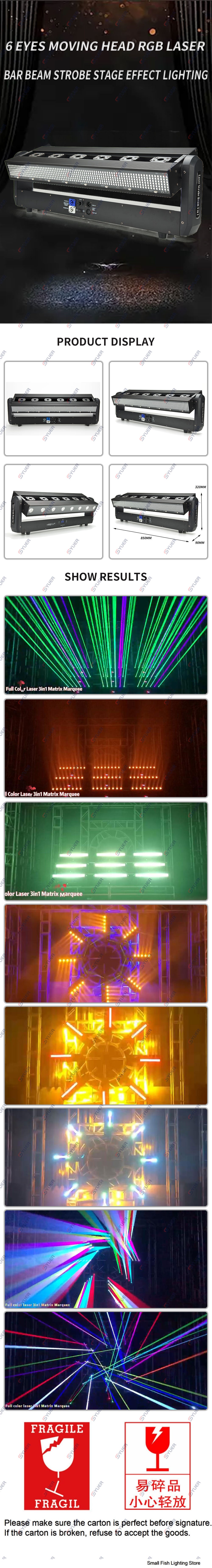 YUER™️ 6 Eyes Moving Head RGB Laser Bar Beam Strobe Stage Effect Lighting For DJ Disco Party Events DMX Sound Modes Projector Fixtures