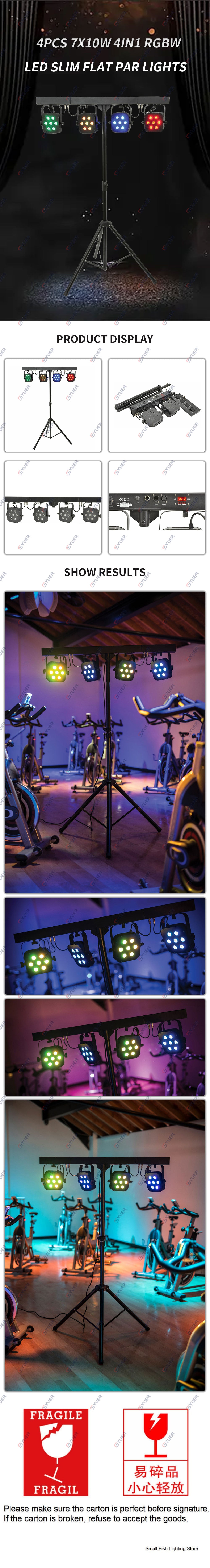 YUER™️ Led Par Kit 4pcs 7x10W 4in1 RGBW Led Slim Flat Par Lights with Light Stand DMX Bar Foot Controller Bag Package Set