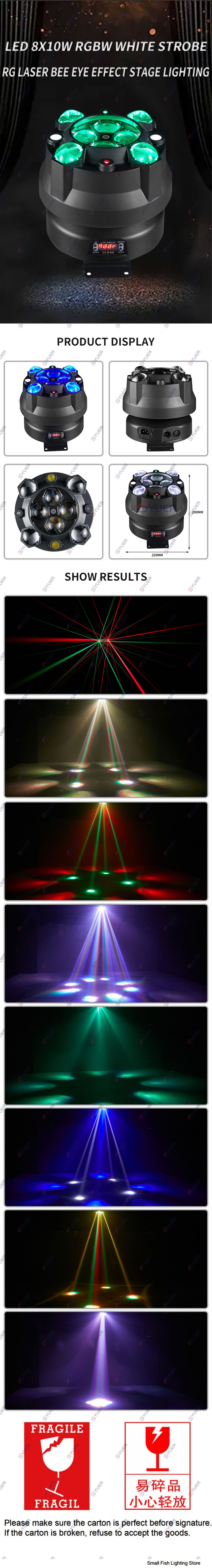 YUER™️ NEW LED 8x10w RGBW White Strobe RG Laser Bee Eye Effect Stage Lighting Party Decoration Wedding Events DMX 17CH Flash Rotation