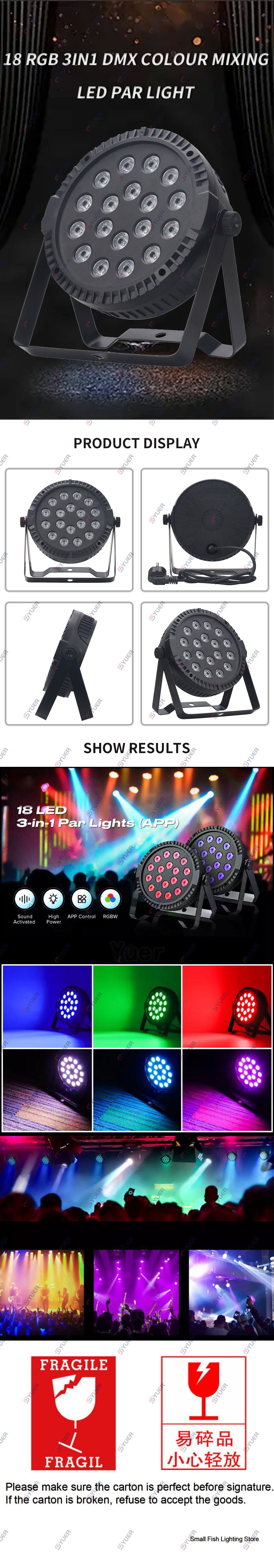 YUER™️ Professional Stage Lights 18LED RGB 3in1 Par Light DMX Colour Mixing For Party DJ Disco Music Show With App Control Night Light