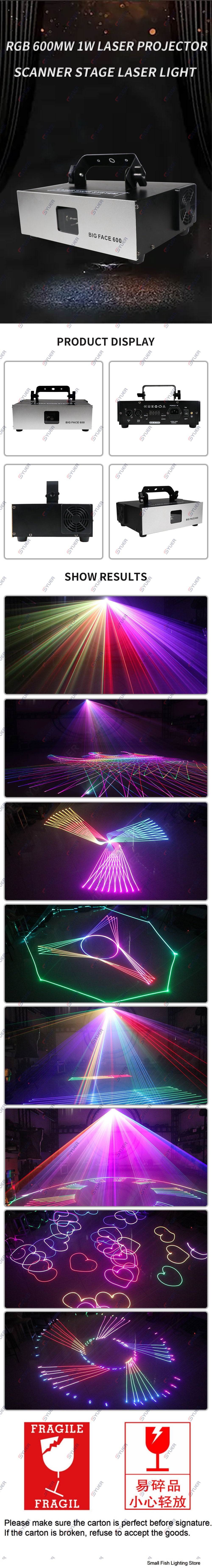 YUER™️ RGB 600mw 1W Laser Projector Scanner Stage Laser Light Show DMX512 DJ Disco Bar Club Party Wedding Professional Stage Lighting