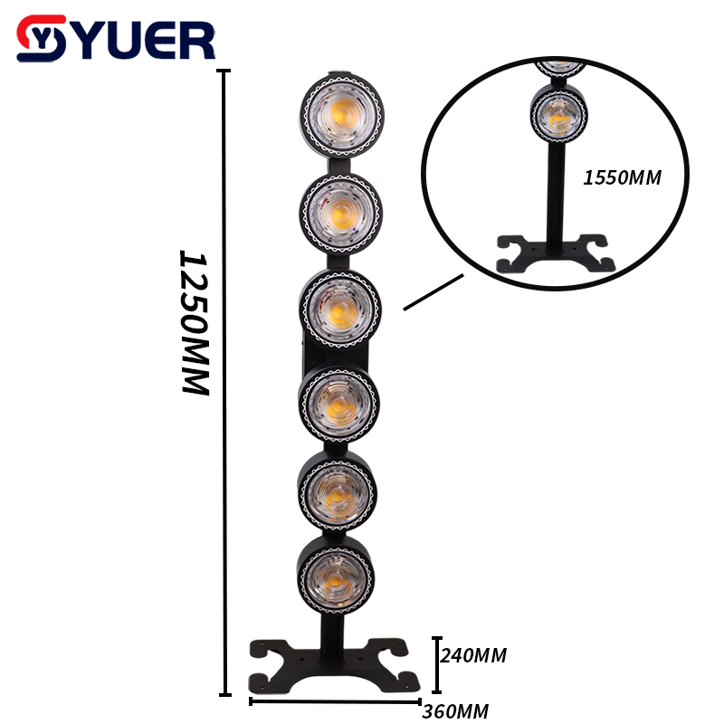 YUER™️LED 6-Eye 6X60W COB Par Light 2200K+RGB Beads Vertical Retro Lamp Light Adjustable Telescopic Wall Wash Effect DMX512 For DJ Stage Bar Disco
