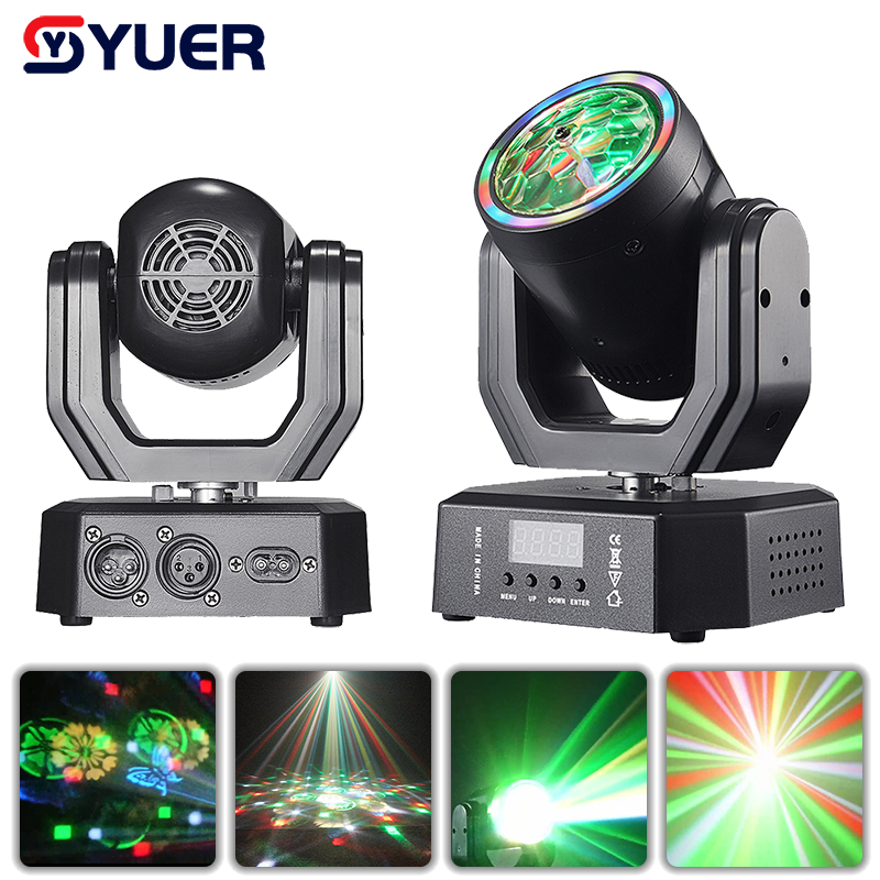 YUER™️NEW LED Mini 2X3W Red+2X3W Green+2X3W Blue Moving Head Beam Light With Ring DMX512 For DJ Disco Stage Party Wedding Dance Floor