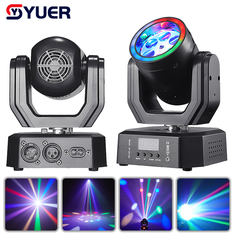 YUER™️NEW Mini LED 2X3W Red+2X3W Green+2X3W Blue Bee Eye Moving Head Light With Ring DMX512 For DJ Disco Stage Party Wedding Dance Floor